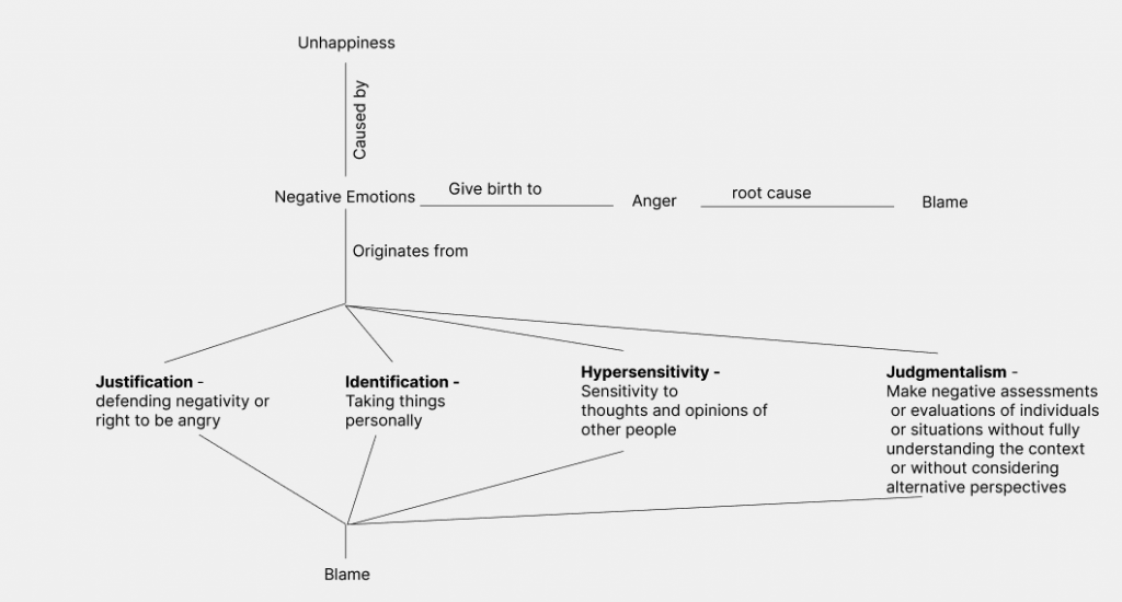 Nagativite Emotions: Blame is often associated with negative emotions like anger, resentment, guilt, and frustration. These emotions are obstacles to experiencing happiness, as they can lead to stress, anxiety, and a general sense of unhappiness.