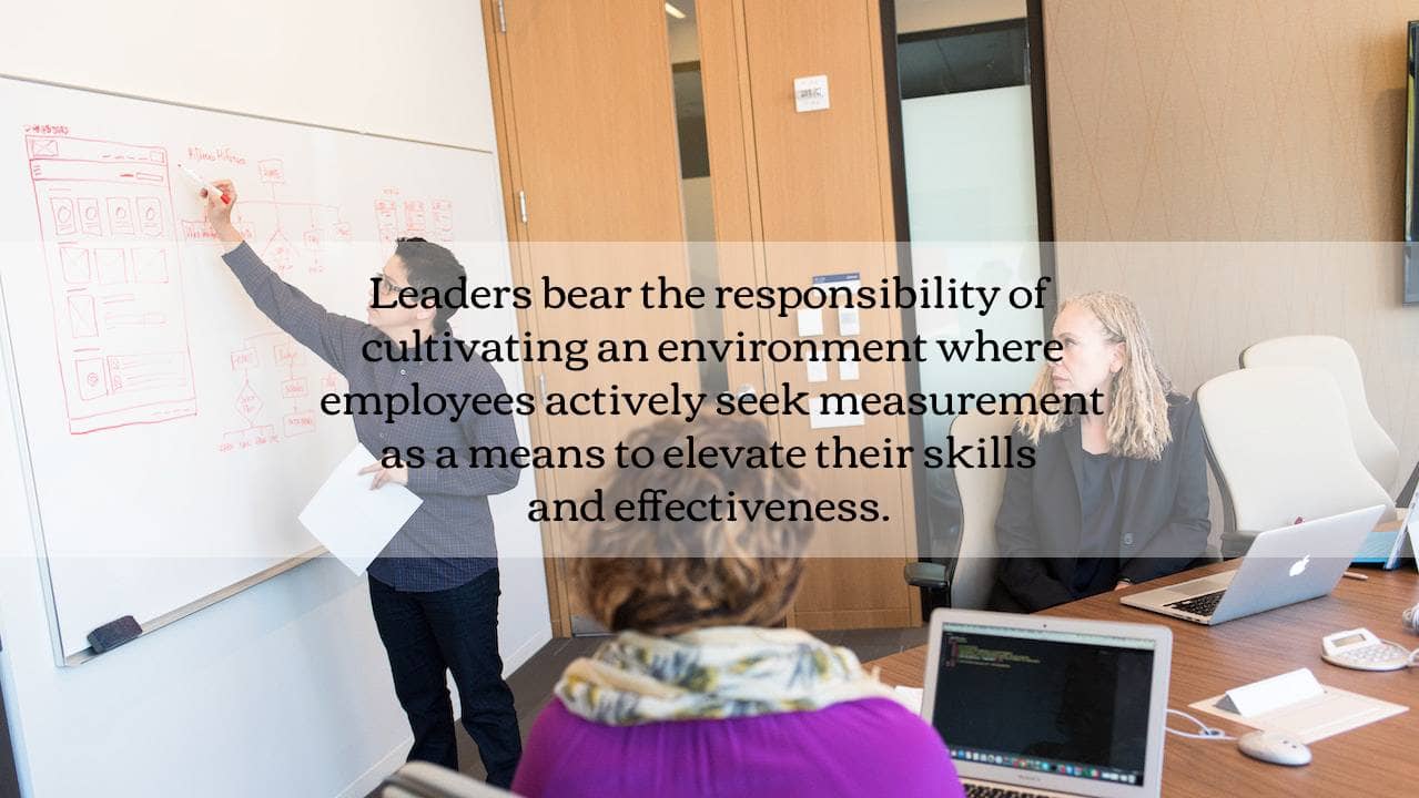 Leaders bear the responsibility of cultivating an environment where employees actively seek measurement as a means to elevate their skills and effectiveness. When measurement is perceived as a valuable resource for self-improvement, it fosters a culture of continuous learning and development. In such an environment, individuals are not apprehensive about metrics but instead view them as instruments that aid them in achieving their full potential.